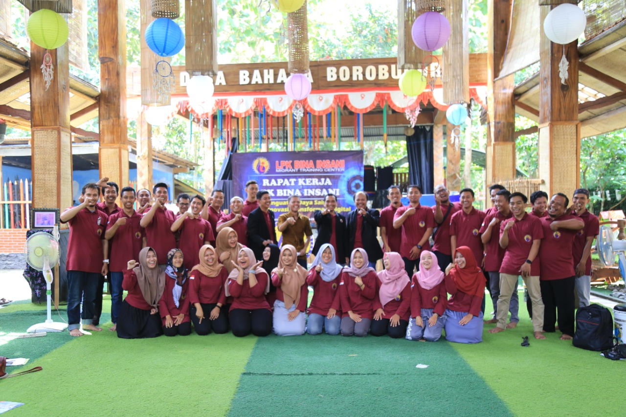 Hari Jumat, 24 Januari 2020, para karyawan Bina Insani Migrant Training Center mengadakan kegiatan Rapat Kerja di Desa Bahasa Borobudur Magelang. Kegiatan tersebut dihadiri oleh seluruh karyawan Bina Insani Yogyakarta dan Magelang serta dipimpin langsung oleh Direktur Bina Insani MTC, Bapak Mohammad Rosyidi, S. Ag.